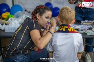 Na stadionowym parkingu przed bramkami (sektor B) czekało mnóstwo atrakcji. Było malowanie twarzy, tatuaże, warkoczyki, a także różnorodne gry i zabawy z nagrodami. Każde dziecko mogło liczyć na drobny upominek, a uśmiechów nie brakowało.