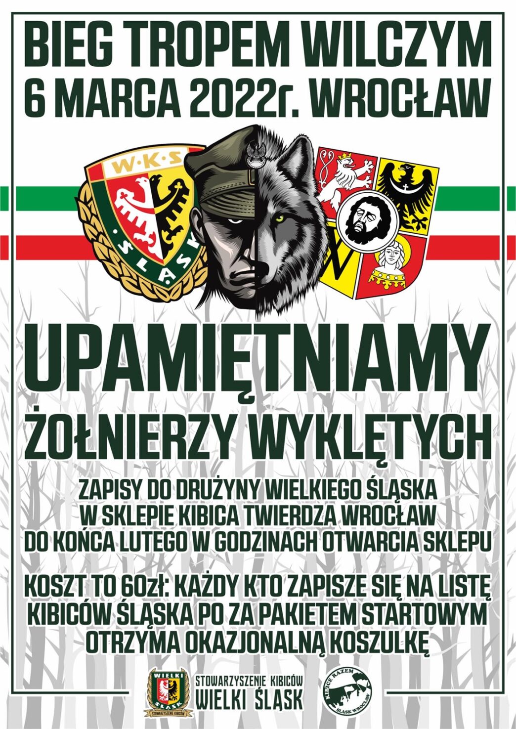 Ruszają zapisy na listę kibiców Śląska startujących w corocznym Biegu Tropem Wilczym, który upamiętnia Żołnierzy Wyklętych.